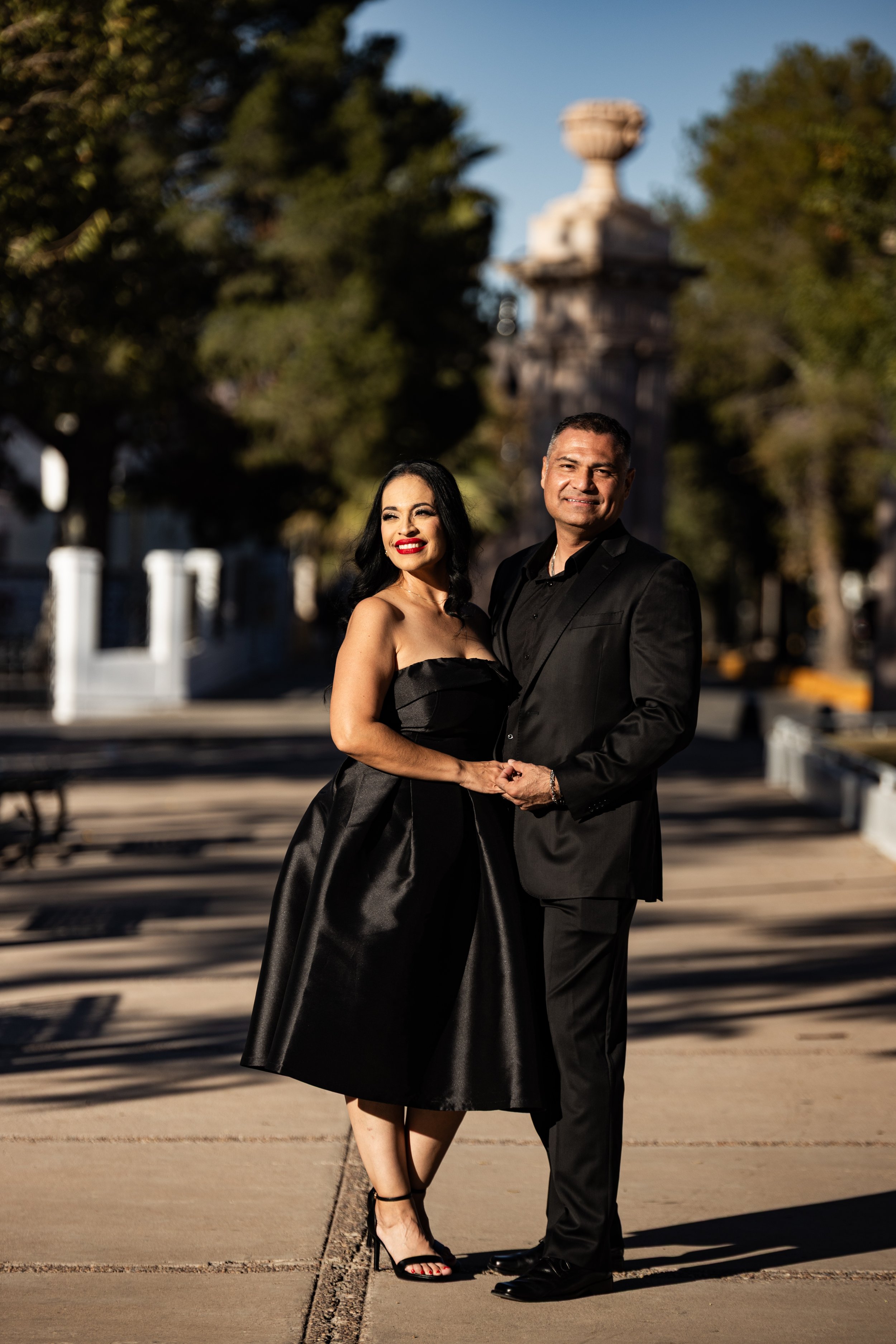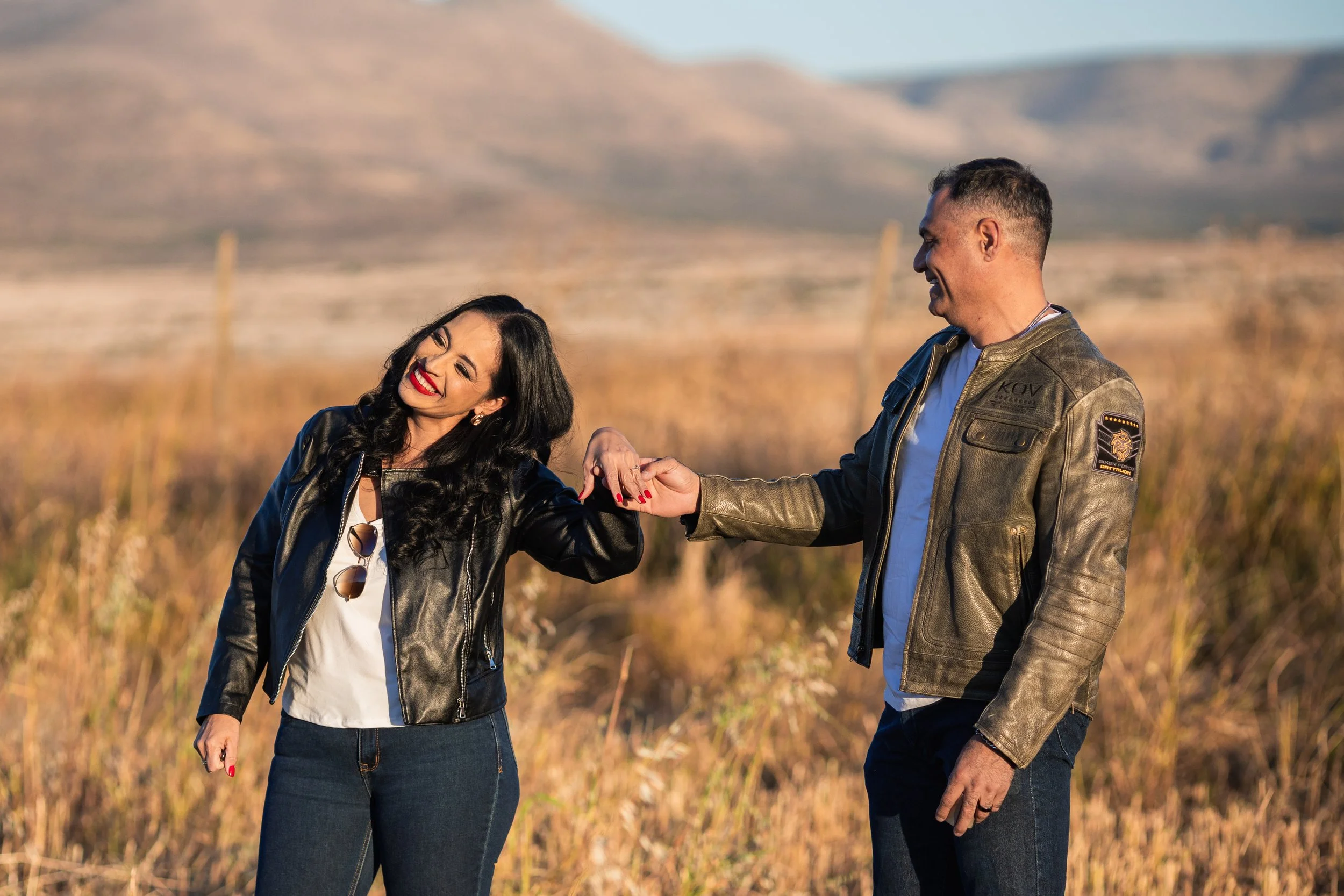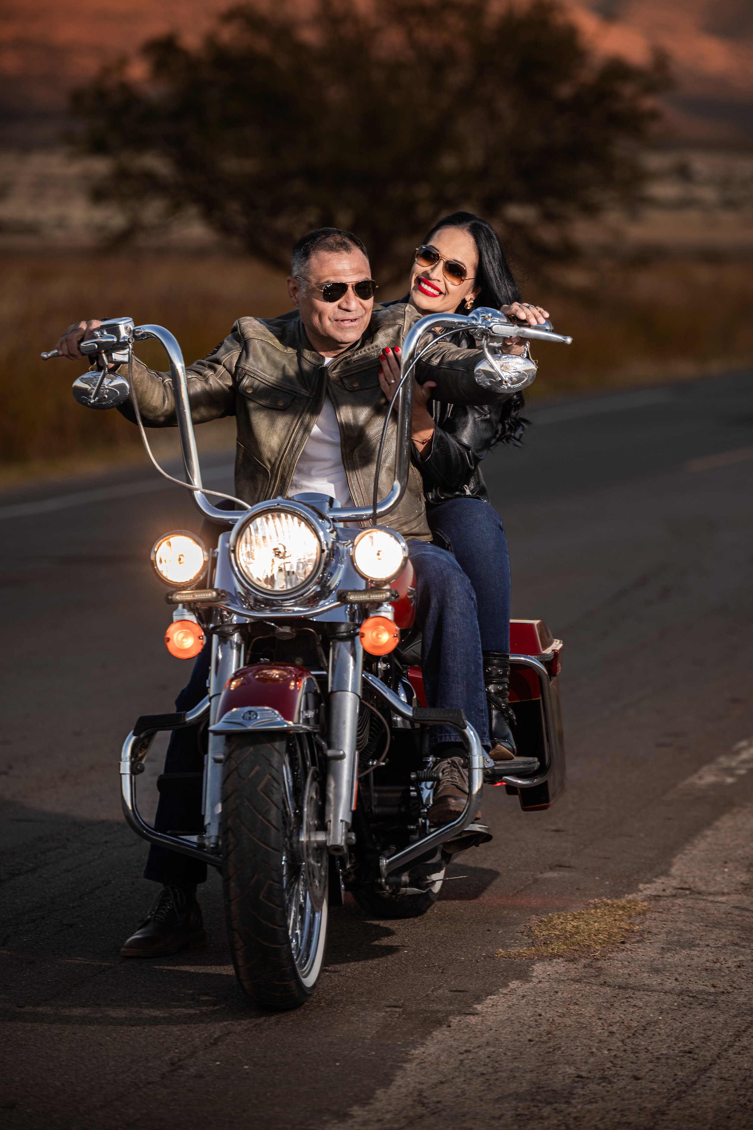 La sesión fue dentro del área de parques del centro de la ciudad de Chihuahua, y la segunda parte, en los campos de trigo a las afueras de la ciudad, con el atardecer y las hermosas montañas para hacer algunas fotos con la moto de David.