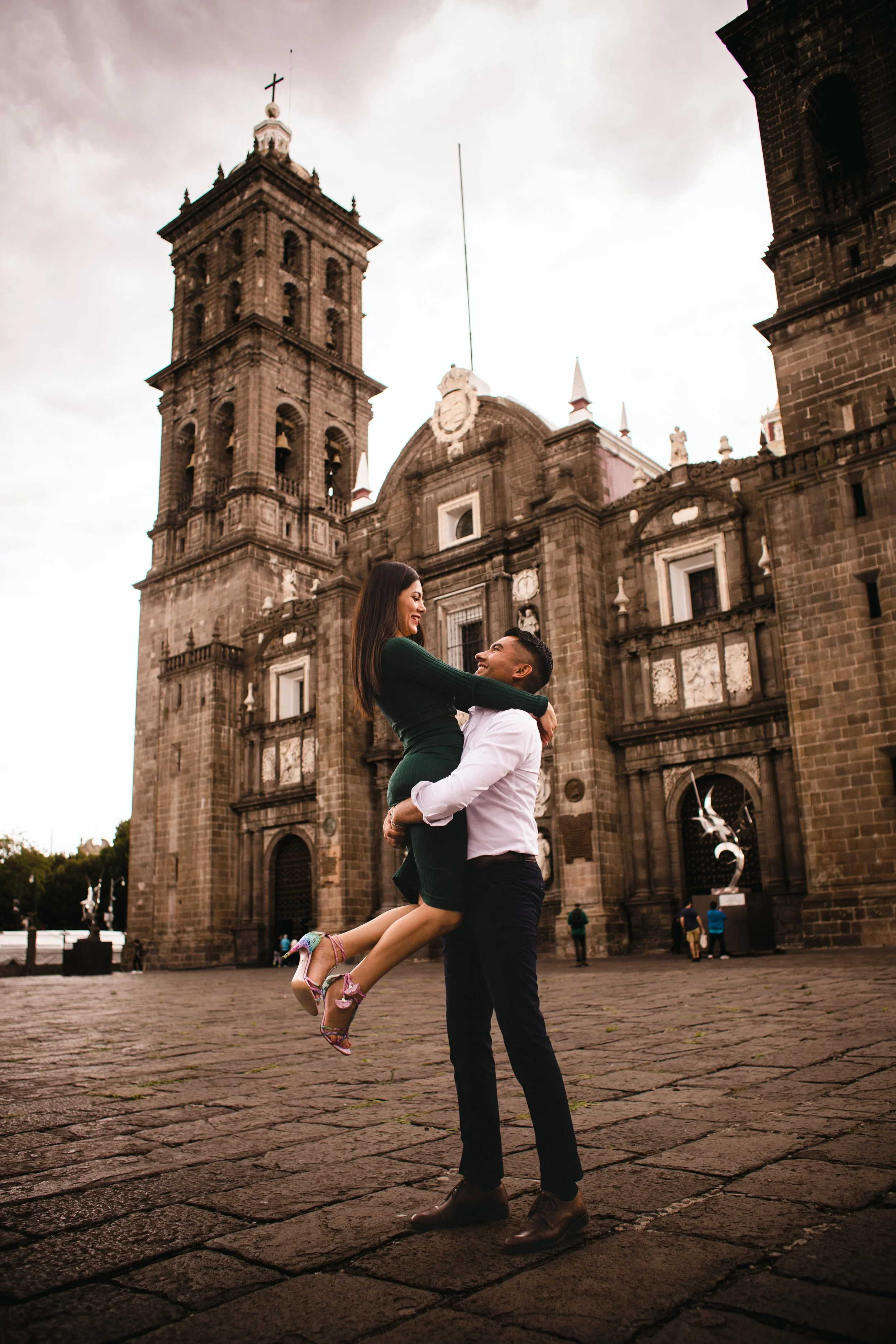 Marcus es de Australia y Liz es de Puebla. Los conocimos en el día de su sesión, en el Centro Histórico, en un día nublado y lluvioso de otoño de 2021. Aunque sus culturas y su idioma son tan diferentes, nos encantó la química que hay entre Marcus y Liz, que nos dio muy buenas fotografías, y ellos quedaron felices con el resultado.