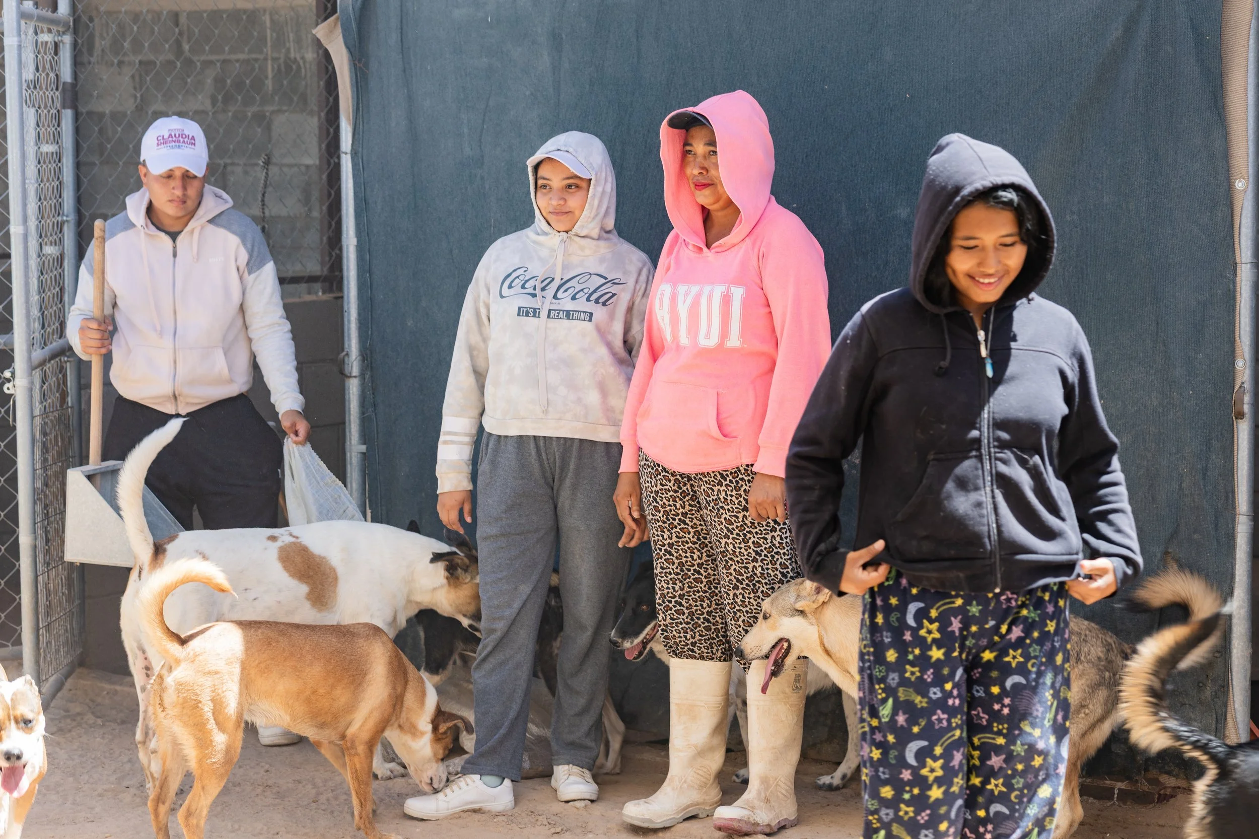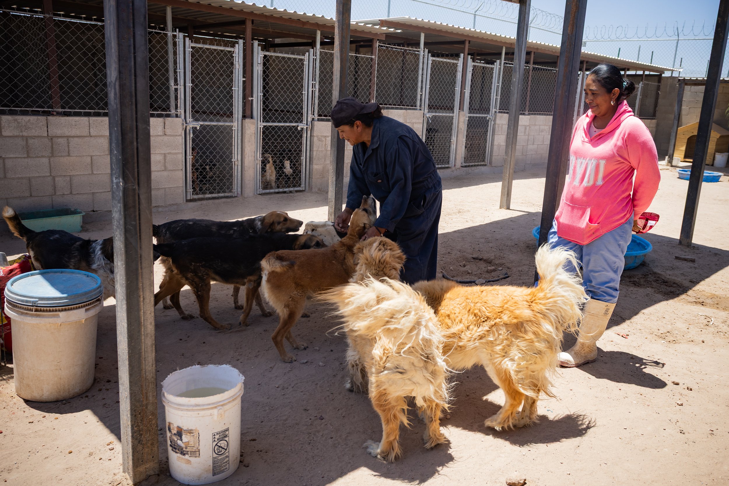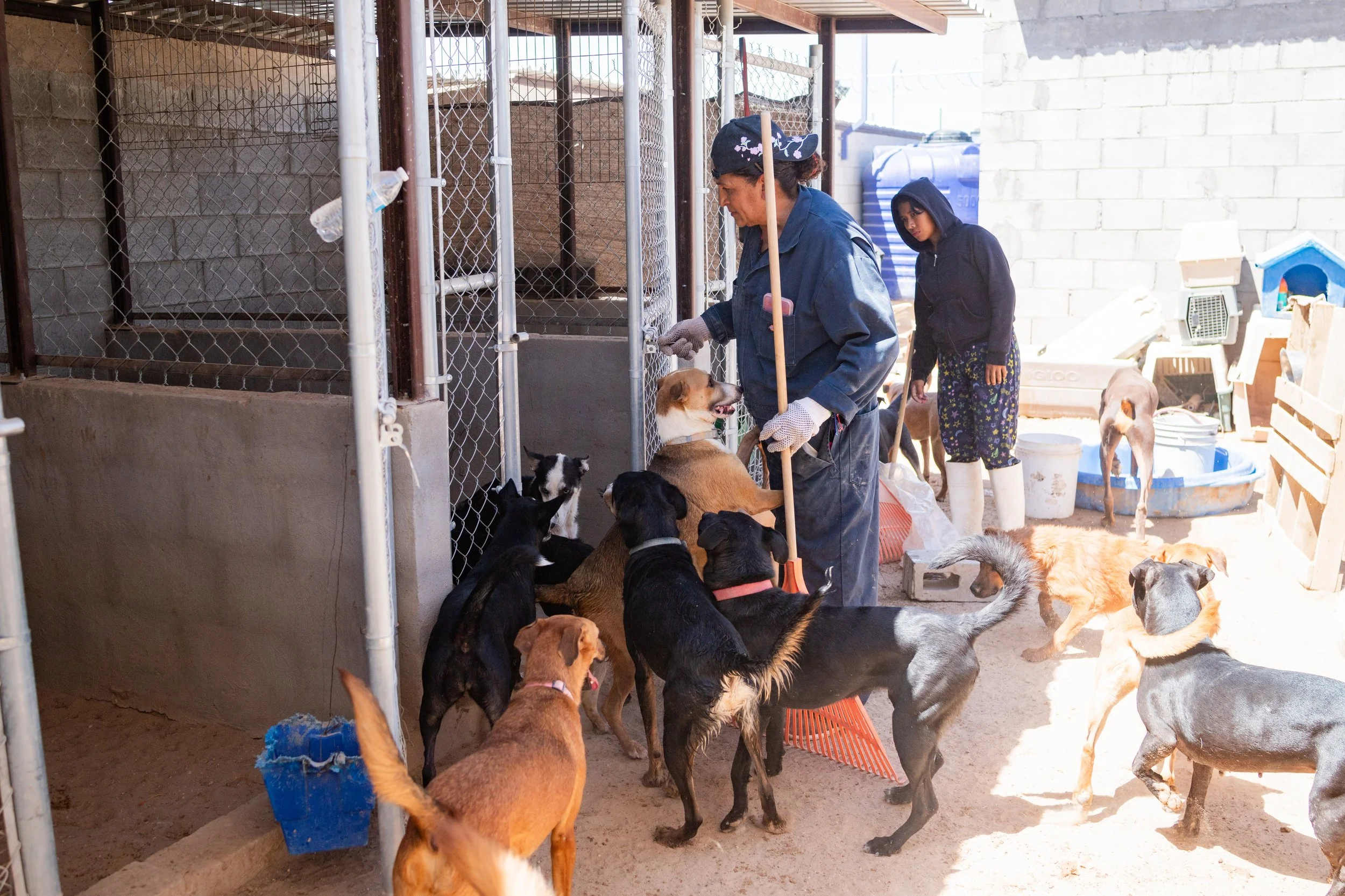 En cuanto llegamos, el ambiente se llenó de ladridos y de un polvo intenso en el aire. Los perros, de todos tamaños, colores y personalidades, nos recibieron con el corazón abierto. Se siente un ambiente familiar y de amor donde los perritos son atendidos por el equipo de Ana. Ella junto con su equipo se dedican a limpiar diariamente, a alimentar y a darles amor a todos los perritos. Incansable, Ana es una mujer admirable que día con día redobla esfuerzos para mantener el refugio a flote.