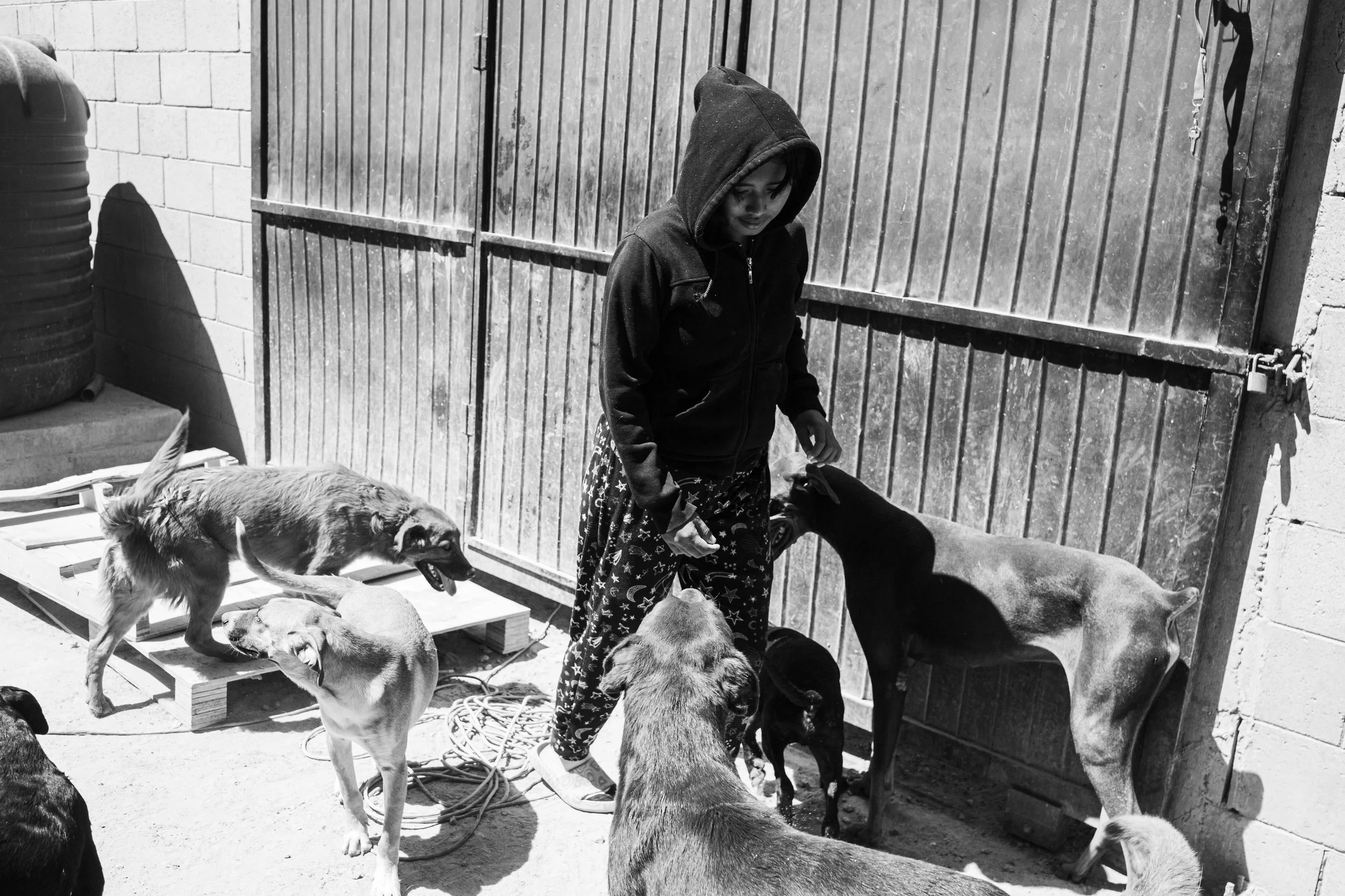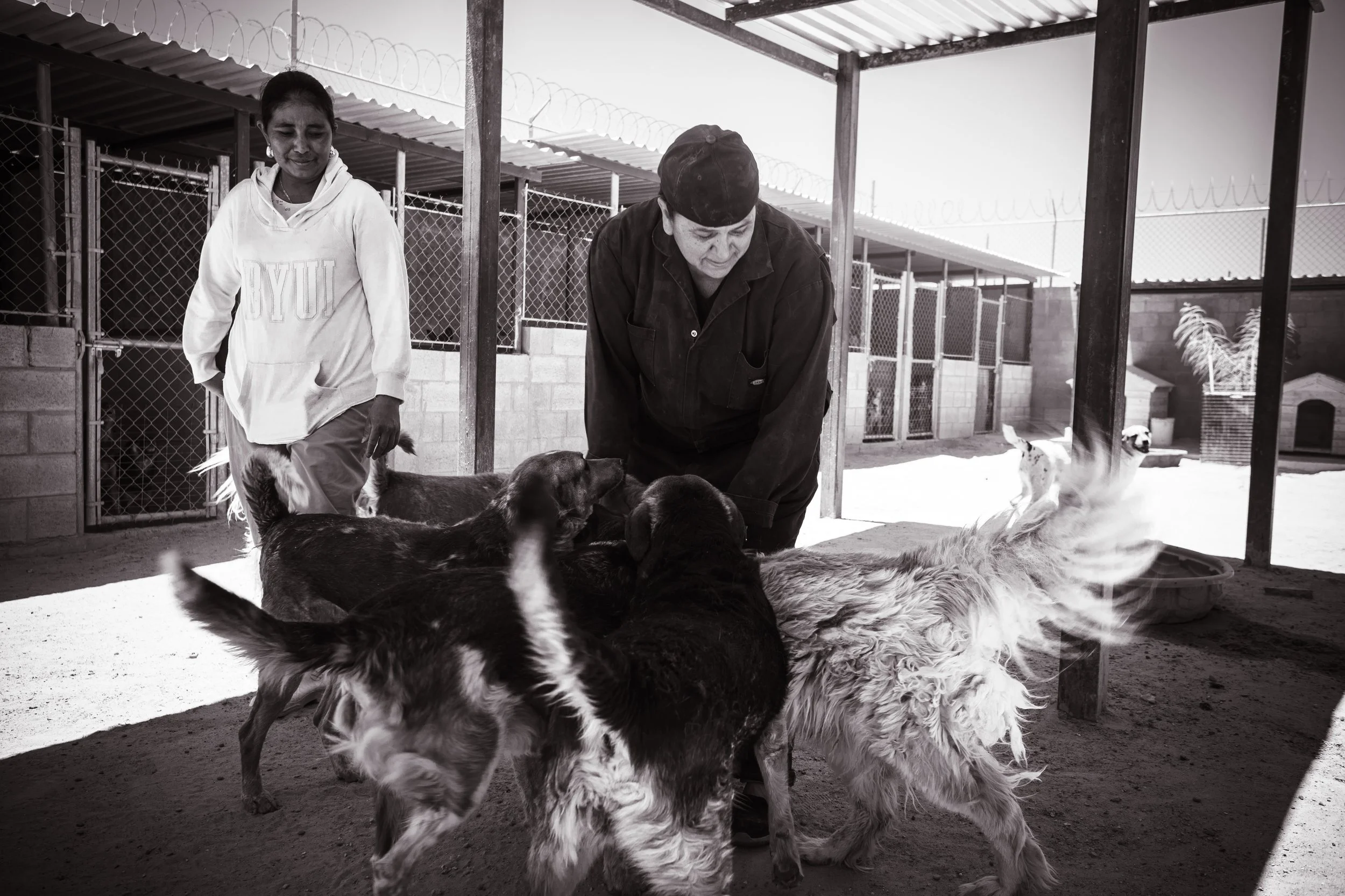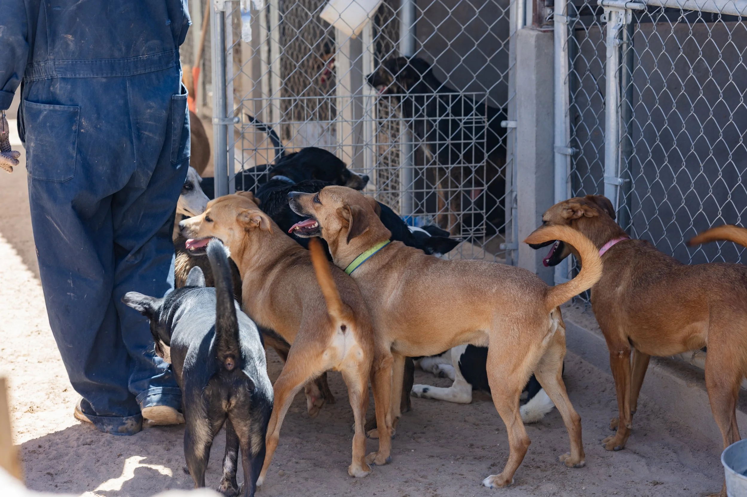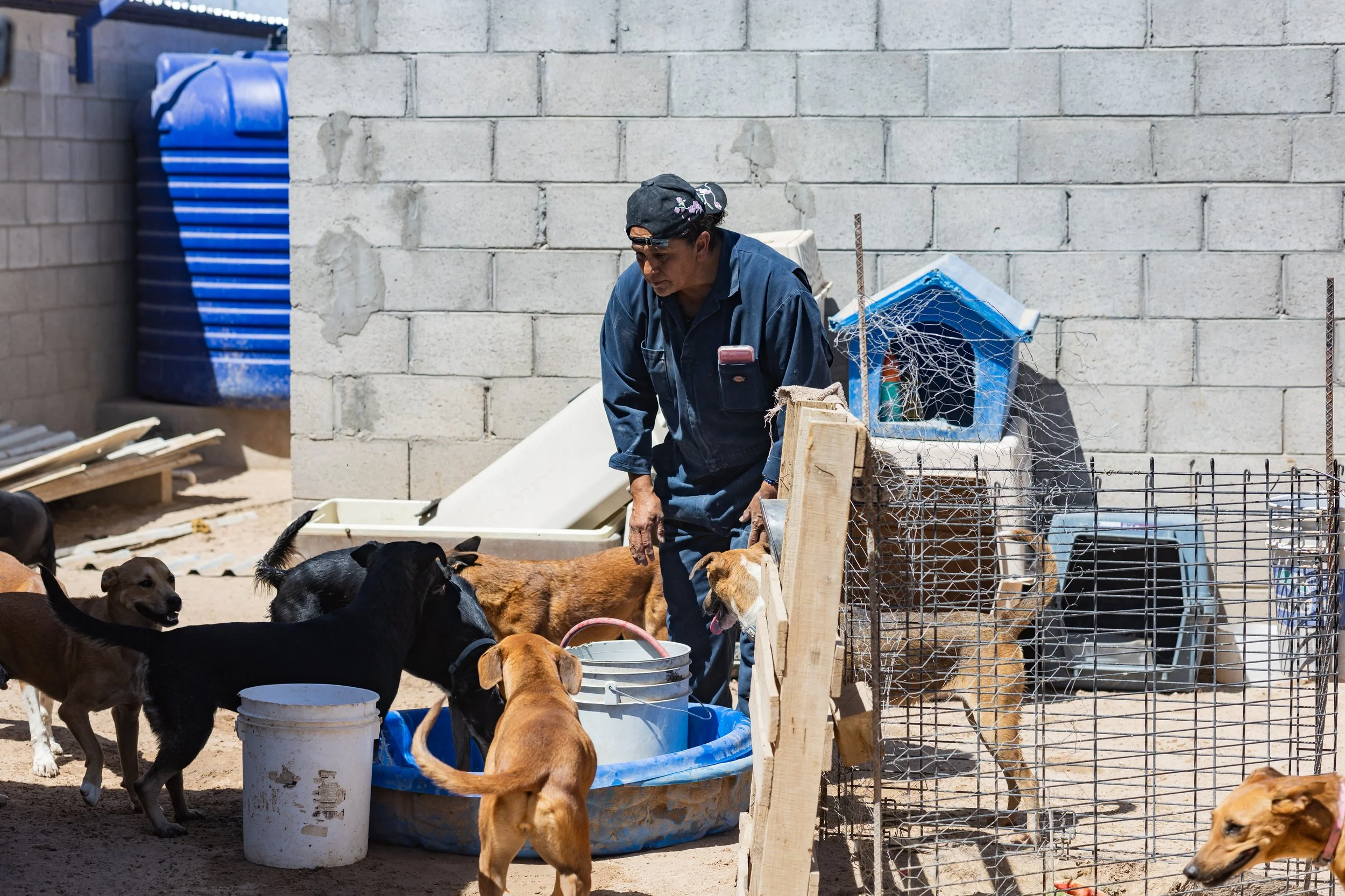 En cuanto llegamos, el ambiente se llenó de ladridos y de un polvo intenso en el aire. Los perros, de todos tamaños, colores y personalidades, nos recibieron con el corazón abierto. Se siente un ambiente familiar y de amor donde los perritos son atendidos por el equipo de Ana. Ella junto con su equipo se dedican a limpiar diariamente, a alimentar y a darles amor a todos los perritos. Incansable, Ana es una mujer admirable que día con día redobla esfuerzos para mantener el refugio a flote.